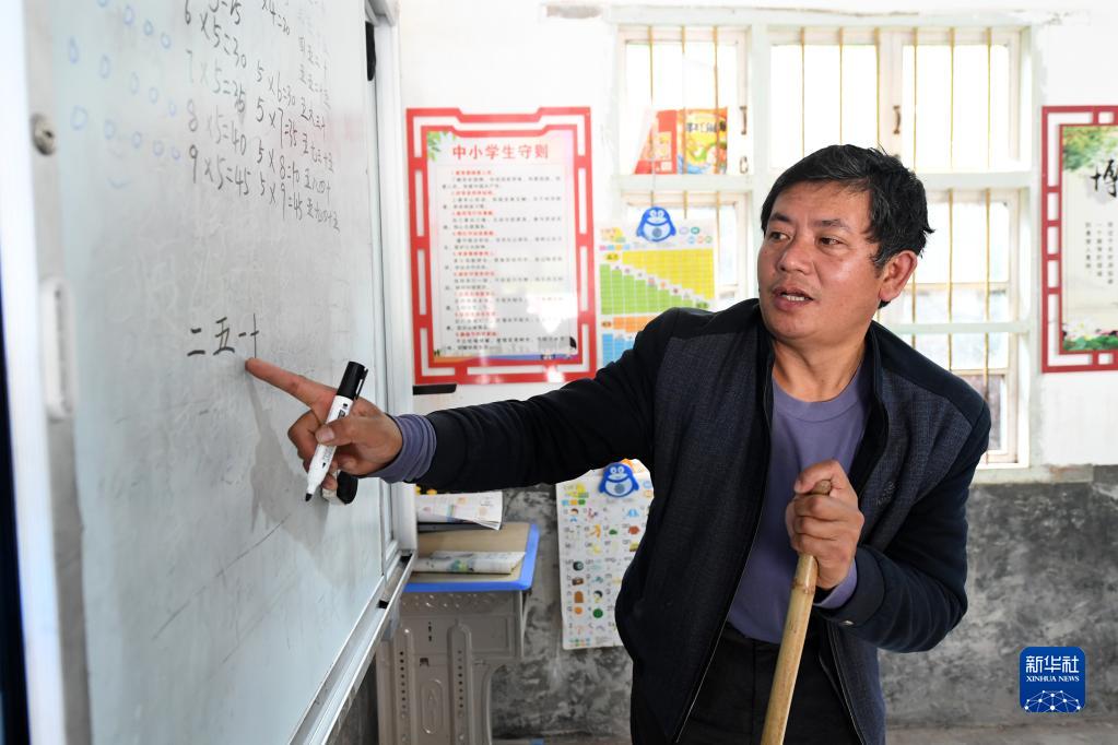 包養在广西灵川县海包養洋乡安泰教学点,秦兴国在给学生包養網上课包養網(10月28日摄)。